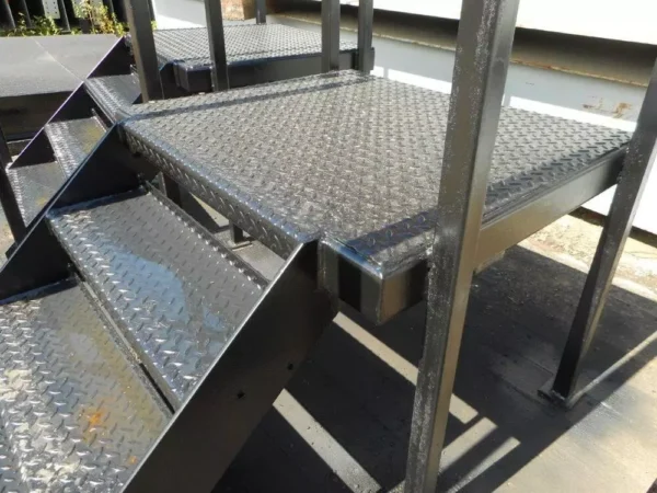 Each staircase has 3 no steps plus a landing with an overall rise of 800mm: