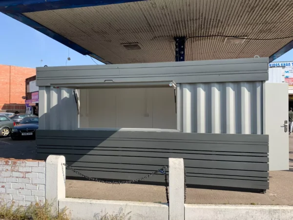 Item: 16ft x 8ft Piston Serving Hatch Shipping Container ideal for street food / coffee shop / burger shop / pizza / pop up bar / food kiosk