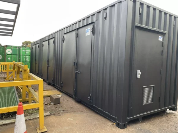 40×8 container lock up with two or three side double doors. With anti condensation paint. Lock boxes on doors .