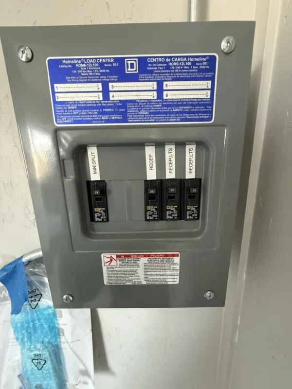 40′ high cube shipping container office. 120V 20 amp plug-in, mini split heat and air HVAC, closed-cell spray foam in walls, ceiling and floor, framed, OSB, paint and conduit electrical for easy configuration. Can also provide with romex electrical. High quality build with two 48×36 windows and a steel walk-door. Shipping is additional.