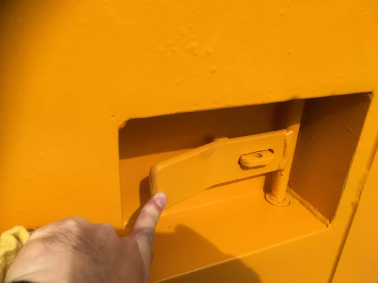 The units has a single secure steel door (clear opening dimensions of 910mm x 2080mm) mounted on bloxwich type heavy duty hinges. The locking mechanism is a pull lever that is connected internally to a cam bar with 2no steel claws that grasps around the units door pillar when the door is closed and the lever pushed in and locked into position with the padlock.