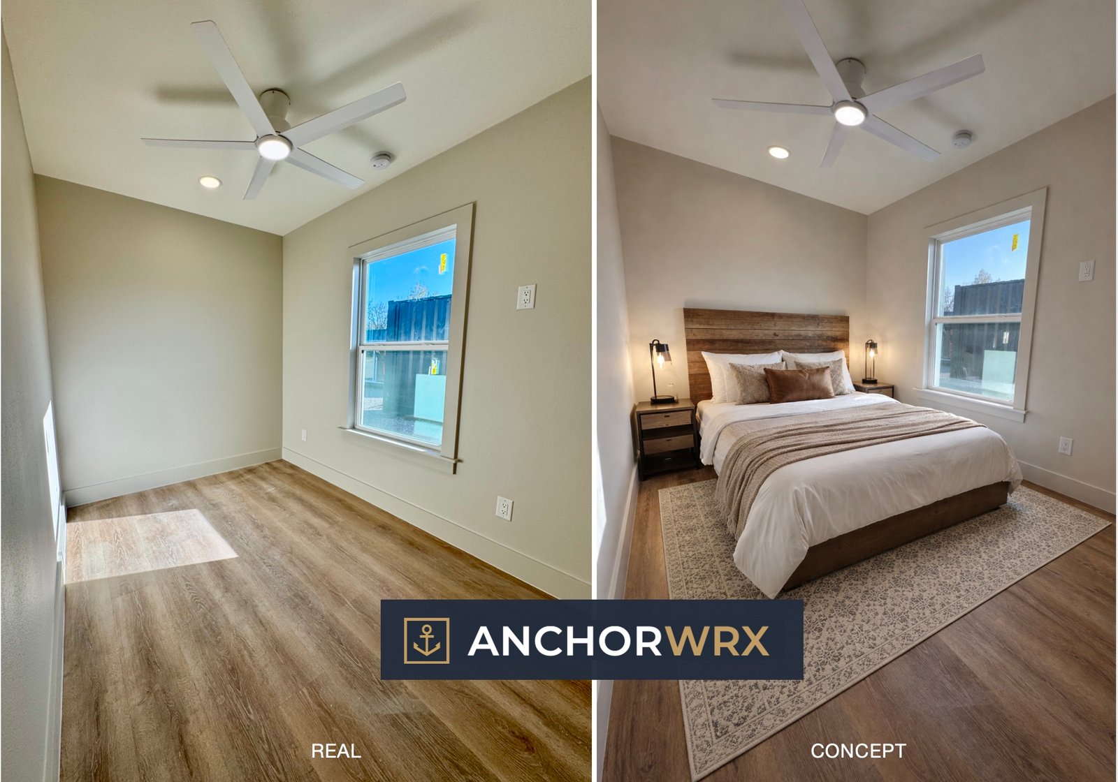 Ceiling fans in bedroom & living