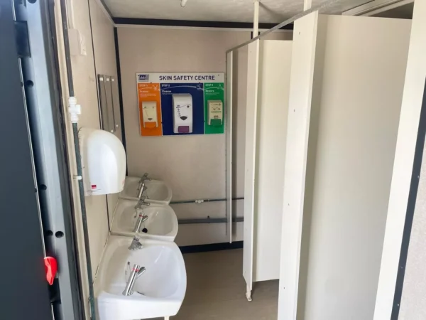 20ft anti vandal container – used 3 plus 1 toilet block male has 3 cubicle wash basins and urinals